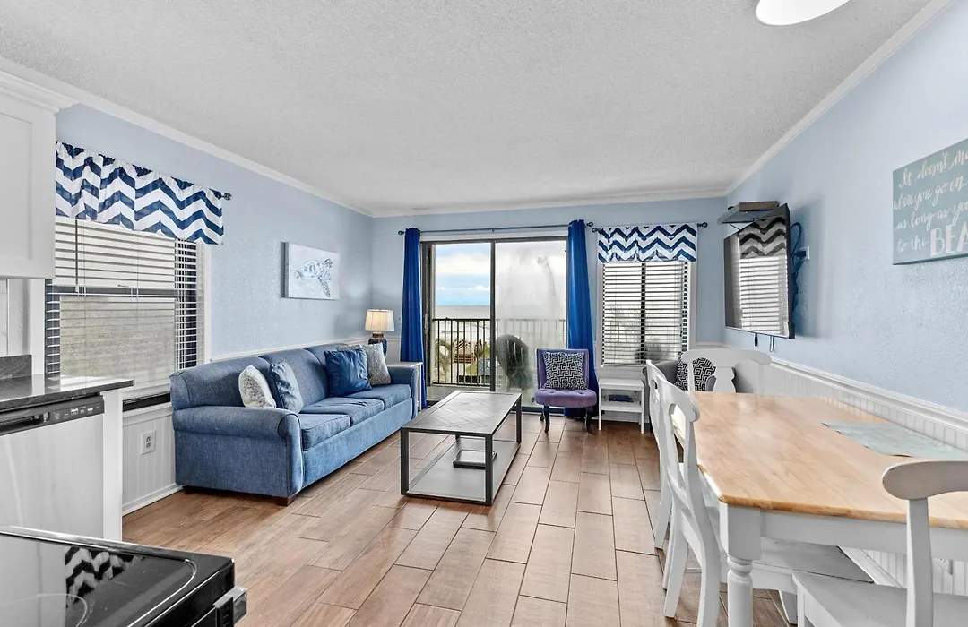 Along with self-catering amenities like an equipped kitchen, the Myrtle Beach accommodation also offers a dining area. The kitchen also offers tea and coffee making equipment, a refrigerator, and kitchenware.